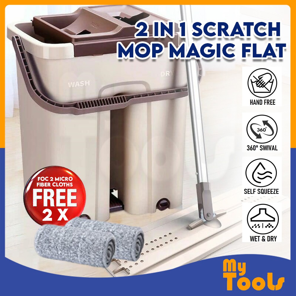Xl Size Mytools 2 In 1 Scratch Mop Magic Flat Scratch Mop Foc 2 Microfiber Cloths Shopee Malaysia