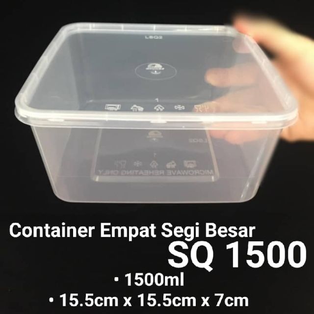 Square Food Container Sq1500 Disposable Plastic Container Bekas Makanan 1500ml 50pcs Shopee Malaysia
