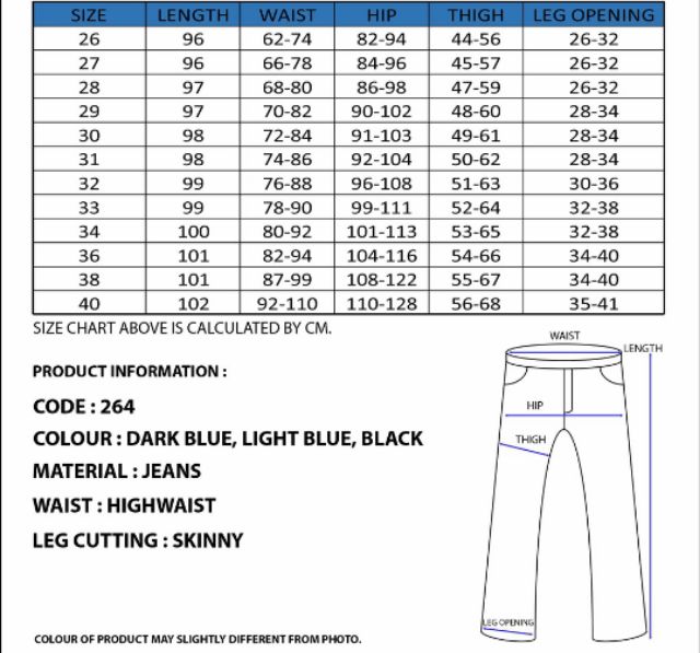 Saiz seluar jeans wanita. RGN BY HANZO Women High Waist Skinny Fit Jeans - Black. Untuk mengambil jaket anda perlu mengetahui ketinggian anda. Selain menjadi pakaian mesti ada dalam almari ia juga tahan lasak selesa dan sesuai dipadankan dalam apa jua gaya.