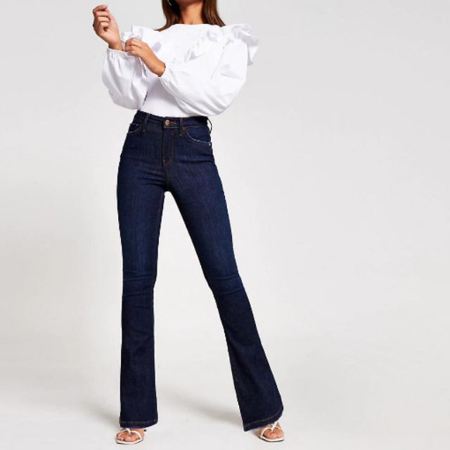 Ready Stock Super Hot Normal To Plus Saiz Dark Blue Bootcut Jeans For Women Shopee Malaysia
